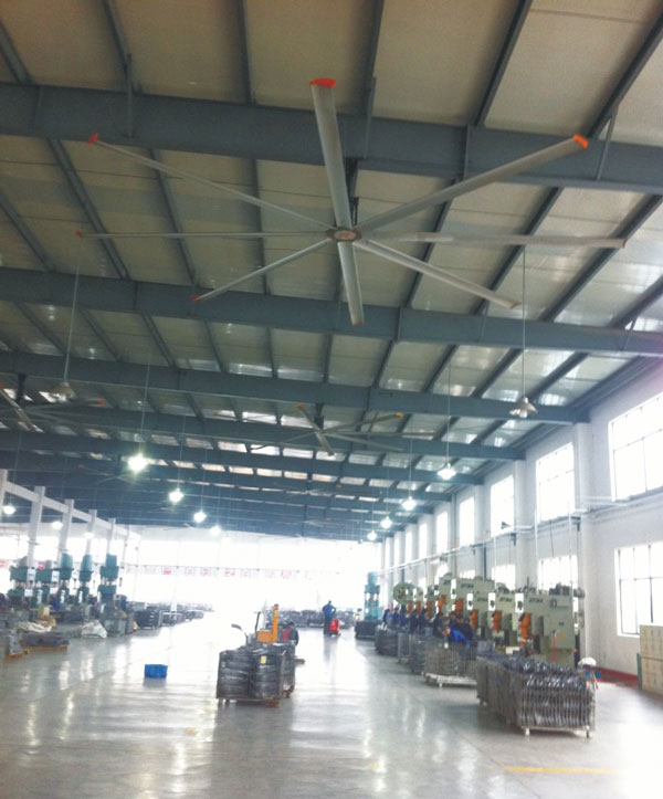 我公司生產的大型工業吊扇直接懸掛在廠房屋梁下,風力柔和,能加快車間空氣流通,有效降低車間內溫度,改善車間空氣環境質量,有利于員工的身體健康。